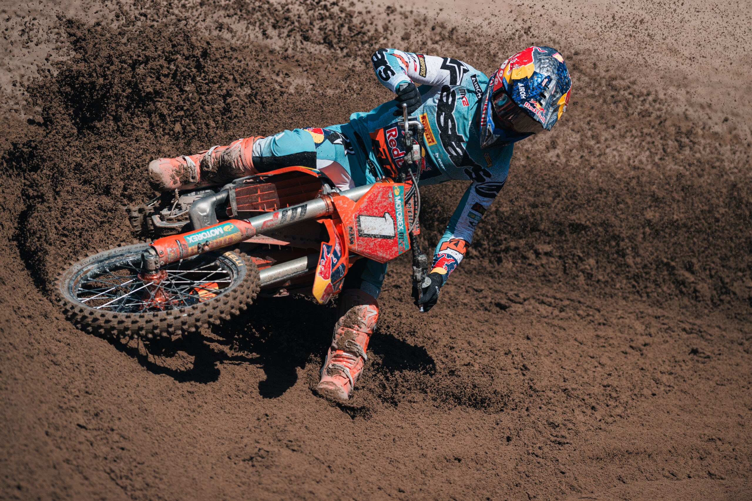 Verso la fine della manche Coenen sbaglia, e in un attimo Herlings si è riportato sotto, riaccendendo completamente il finale. Herlings ha continuato a provarci, ma Coenen non ha perso lucidità. Alla bandiera a scacchi il belga ha vinto con appena 1.219 di vantaggio su Herlings. Terzo ha chiuso Kay de Wolf, poi Romain Febvre e Ruben Fernandez. Tra gli italiani, gran bella prova di Alberto Forato, settimo e Andrea Adamo ha chiuso 18° dopo lo scivolone.